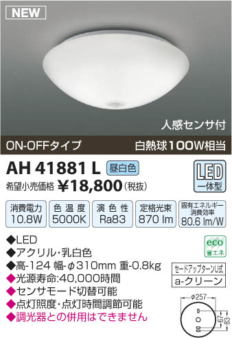 ¥³¥¤¥º¥ß¾ÈÌÀ KOIZUMI ¾®·¿¥·¡¼¥ê¥ó¥° LED AH41881L