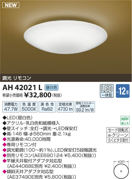 ¥³¥¤¥º¥ß¾ÈÌÀ KOIZUMI ÏÂÉ÷¥·¡¼¥ê¥ó¥° LED AH42021L