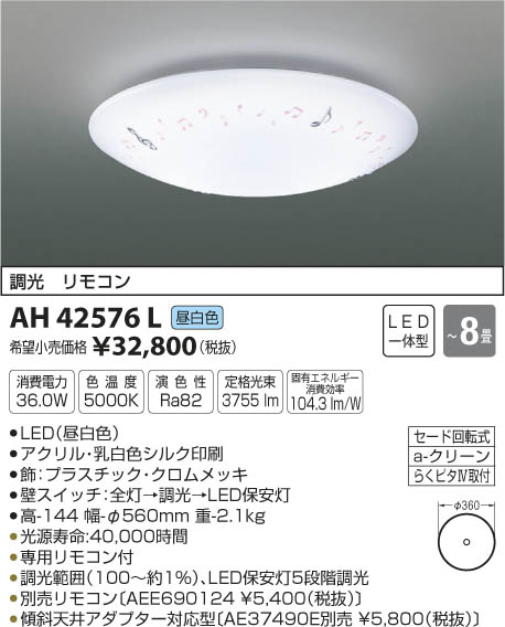 LED36.0W|¡üLED¡ÊÃëÇò¿§¡Ë|¡ü¥¢¥¯¥ê¥ë¡¦ÆýÇò¿§¥·¥ë¥¯°õºþ|¡ü¾þ¡§¥×¥é¥¹¥Á¥Ã¥¯¡¦¥¯¥í¥à¥á¥Ã¥|¡üÊÉ¥¹¥¤¥Ã¥Á¡§Á´Åô¢ªÄ´¸÷¢ªLEDÊݰÂÅô|¡É¡ü¹â-144 Éý-¦Õ560mm ½Å-2.1kg¡É|¡ü¾ÃÈñÅÅÎÏ:36.0W|¡ü¿§²¹ÅÙ:5000K|¡ü±é¿§À:Ra82|¡É¡üÄê³Ê¸÷«:3¡¤755 lm¡É|¡É¡ü¸ÇÍ¥¨¥Í¥ë¥®¡¼¾ÃÈñ¸úΨ:104.3 lm/W¡É|¡É¡ü¸÷¸»¼÷Ì¿¡§40¡¤000»þ´Ö¡É|¡üÀìÍÑ¥ê¥â¥³¥óÉÕ|¡üÄ´¸÷ÈϰϡÊ100¡ÁÌó1¡ó¡Ë¡¢LEDÊݰÂÅô5Ãʳ¬Ä´¸÷|¡É¡üÊÌÇä¥ê¥â¥³¥ó¡ÌAEE690124 ¡ï5¡¤400¡ÊÀÇÈ´¡Ë¡Í¡É|¡É¡ü·¹¼ÐÅ·°æ¥¢¥À¥×¥¿Âбþ·¿¡ÌAE37490E ÊÌÇä ¡ï5¡¤800¡ÊÀÇÈ´¡Ë¡Í ¡É ¡Á8¾ö