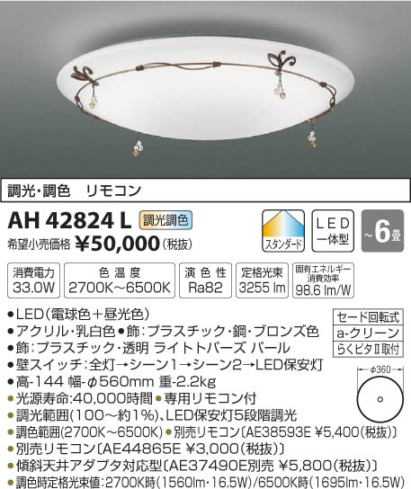 LED33.0W|¡üLED¡ÊÅŵ忧¡ÜÃë¸÷¿§¡Ë|¡ü¥¢¥¯¥ê¥ë¡¦ÆýÇò¿§|¡ü¾þ¡§¥×¥é¥¹¥Á¥Ã¥¯¡¦¹Ý¥Ö¥í¥ó¥º¿§|¡É¡ü¾þ¡§¥×¥é¥¹¥Á¥Ã¥¯¡¦Æ©ÌÀ ¥é¥¤¥È¥È¥Ñ¡¼¥º ¥Ñ¡¼¥ë¡É|¡üÊÉ¥¹¥¤¥Ã¥Á¡§Á´Åô¢ª¥·¡¼¥ó1¢ª¥·¡¼¥ó2¢ªLEDÊݰÂÅô|¡É¡ü¹â-144 Éý-¦Õ560mm ½Å-2.2kg¡É|¡ü¾ÃÈñÅÅÎÏ:33.0W|¡ü¿§²¹ÅÙ:2700K¡Á6500K|¡ü±é¿§À:Ra82|¡É¡üÄê³Ê¸÷«:3¡¤255 lm¡É|¡É¡ü¸ÇÍ¥¨¥Í¥ë¥®¡¼¾ÃÈñ¸úΨ:98.6 lm/W¡É|¡É¡ü¸÷¸»¼÷Ì¿¡§40¡¤000»þ´Ö¡É|¡üÀìÍÑ¥ê¥â¥³¥óÉÕ|¡üÄ´¸÷ÈϰϡÊ100¡ÁÌó1¡ó¡Ë¡¢LEDÊݰÂÅô5Ãʳ¬Ä´¸÷|¡üÄ´¿§ÈϰϡÊ2700K¡Á6500K¡Ë|¡É¡üÊÌÇä¥ê¥â¥³¥ó¡ÌAE38593E ¡ï5¡¤400¡ÊÀÇÈ´¡Ë¡Í¡É|¡É¡üÊÌÇä¥ê¥â¥³¥ó¡ÌAE44865E ¡ï3¡¤000¡ÊÀÇÈ´¡Ë¡Í¡É|¡É¡ü·¹¼ÐÅ·°æ¥¢¥À¥×¥¿Âбþ·¿¡ÌAE37490EÊÌÇä ¡ï5¡¤800¡ÊÀÇÈ´¡Ë¡Í¡É|¡üÄ´¿§»þÄê³Ê¸÷«ÃÍ¡§2700K»þ¡Ê1560lm¡¦16.5W¡Ë/6500K»þ¡Ê1695lm¡¦16.5W¡Ë ¡Á6¾ö