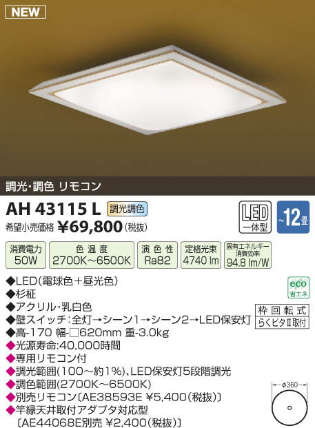 ¥³¥¤¥º¥ß¾ÈÌÀ KOIZUMI ÏÂÉ÷¥·¡¼¥ê¥ó¥° LED AH43115L