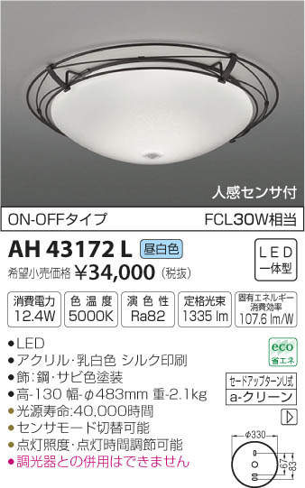 ¥³¥¤¥º¥ß¾ÈÌÀ KOIZUMI LED ¾®·¿¥·¡¼¥ê¥ó¥° AH43172L