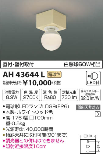 ¥³¥¤¥º¥ß¾ÈÌÀ KOIZUMI ¾®·¿¥·¡¼¥ê¥ó¥° LED¡ÊÅŵ忧¡Ë AH43644L