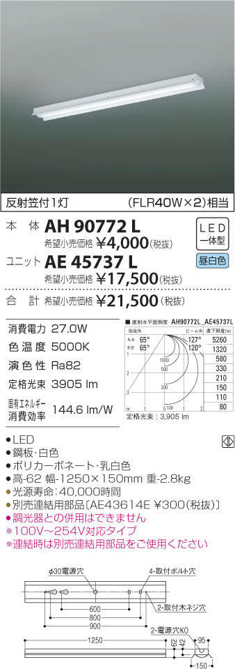 ¥³¥¤¥º¥ß¾ÈÌÀ KOIZUMI LED ¥Ù¡¼¥¹¥é¥¤¥È AH90772L