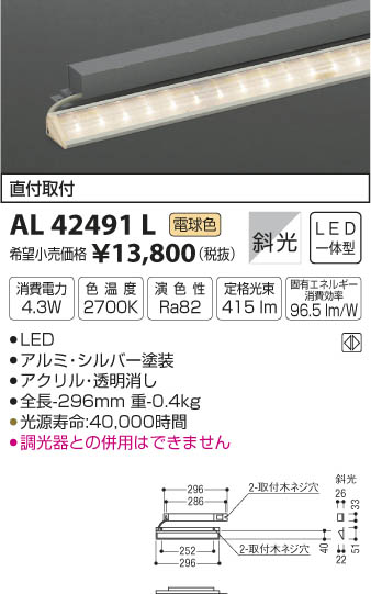 ¥³¥¤¥º¥ß¾ÈÌÀ KOIZUMI ´ÖÀܾÈÌÀ LED¡ÊÅŵ忧¡Ë AL42491L