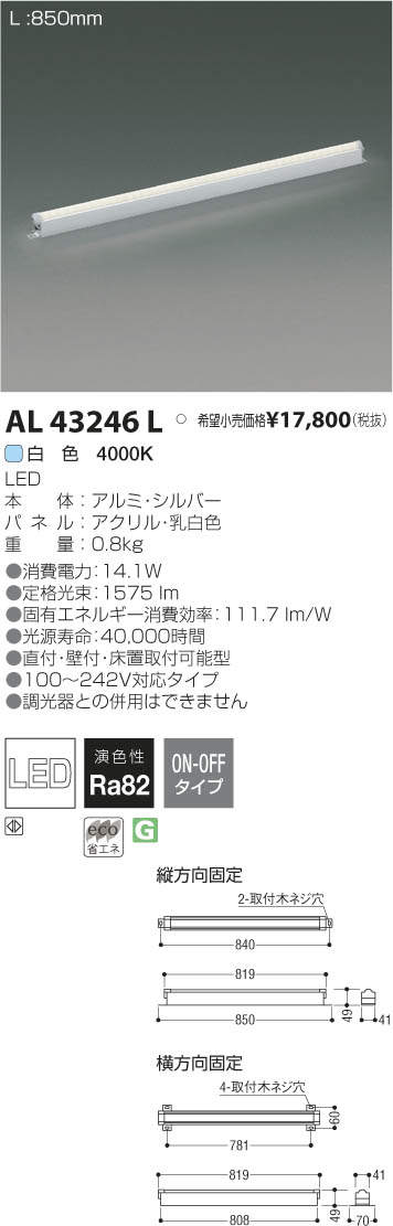 ¥³¥¤¥º¥ß¾ÈÌÀ KOIZUMI LED ´ÖÀܾÈÌÀ AL43246L
