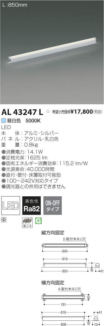 ¥³¥¤¥º¥ß¾ÈÌÀ KOIZUMI LED ´ÖÀܾÈÌÀ AL43247L