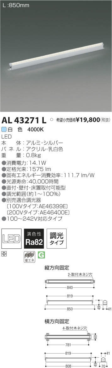 ¥³¥¤¥º¥ß¾ÈÌÀ KOIZUMI LED ´ÖÀܾÈÌÀ AL43271L