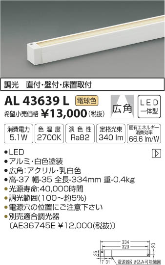 ¥³¥¤¥º¥ß¾ÈÌÀ KOIZUMI ´ÖÀܾÈÌÀ LED¡ÊÅŵ忧¡Ë AL43639L
