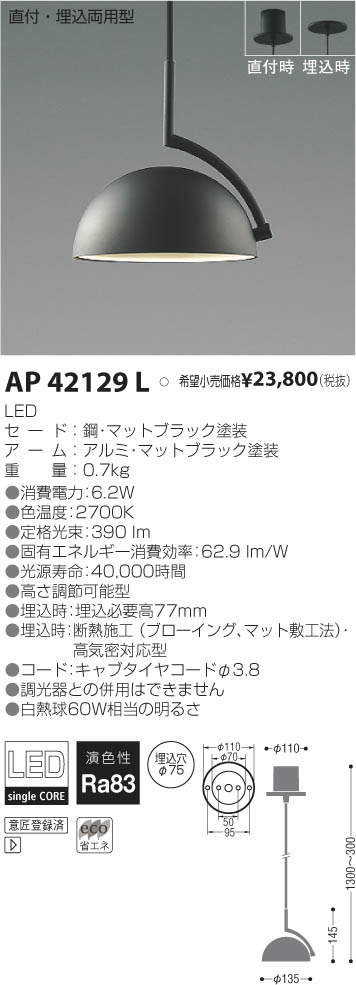 ¥³¥¤¥º¥ß¾ÈÌÀ KOIZUMI LED ¥Ú¥ó¥À¥ó¥È AP42129L