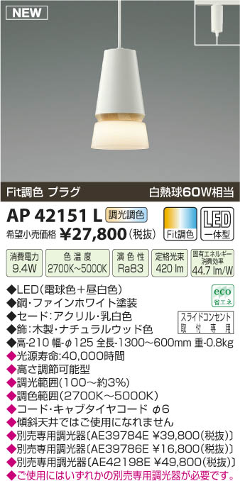 ¥³¥¤¥º¥ß¾ÈÌÀ KOIZUMI ¥Ú¥ó¥À¥ó¥È LED AP42151L