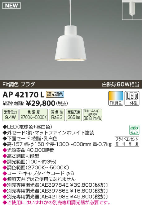 ¥³¥¤¥º¥ß¾ÈÌÀ KOIZUMI ¥Ú¥ó¥À¥ó¥È LED AP42170L