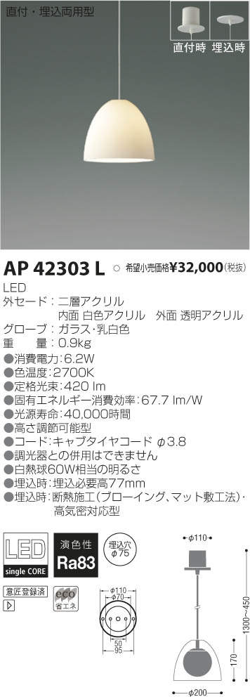 ¥³¥¤¥º¥ß¾ÈÌÀ KOIZUMI LED ¥Ú¥ó¥À¥ó¥È AP42303L