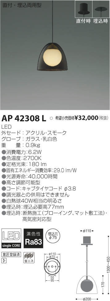 ¥³¥¤¥º¥ß¾ÈÌÀ KOIZUMI LED ¥Ú¥ó¥À¥ó¥È AP42308L