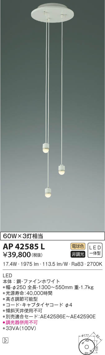 KOIZUMI ¥³¥¤¥º¥ß¾ÈÌÀ ¿áÈ´¥·¥ã¥ó¥Ç¥ê¥¢ AP42585L