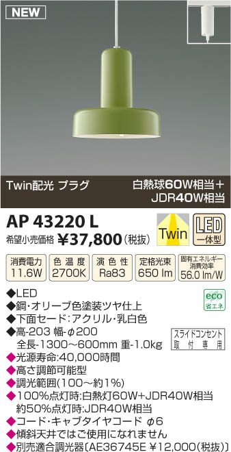 ¥³¥¤¥º¥ß¾ÈÌÀ KOIZUMI ¥Ú¥ó¥À¥ó¥È LED AP43220L