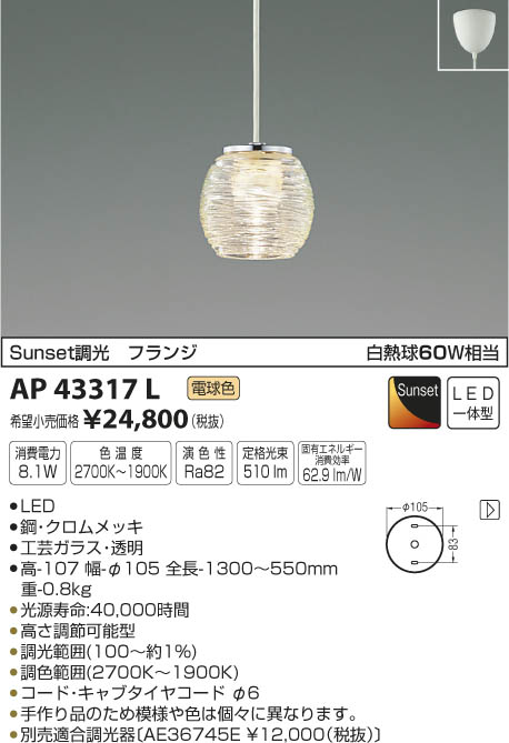 ¥³¥¤¥º¥ß¾ÈÌÀ KOIZUMI ¥Ú¥ó¥À¥ó¥È LED¡ÊÅŵ忧¡Ë AP43317L