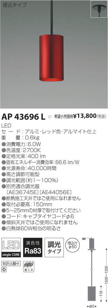 ¥³¥¤¥º¥ß¾ÈÌÀ KOIZUMI LED ¥Ú¥ó¥À¥ó¥È AP43696L