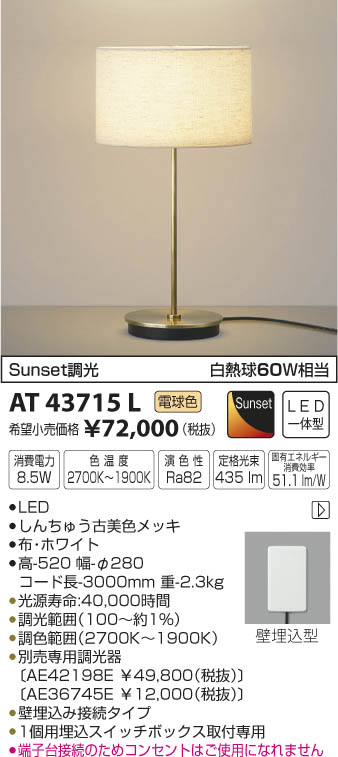 ¥³¥¤¥º¥ß¾ÈÌÀ KOIZUMI ¥¹¥¿¥ó¥É LED¡ÊÅŵ忧¡Ë AT43715L