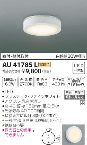 ¥³¥¤¥º¥ß¾ÈÌÀ KOIZUMI Ëɱ«Ëɼ¾·¿¥·¡¼¥ê¥ó¥° AU41785L
