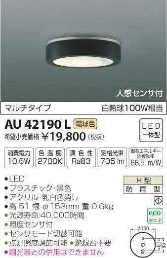 ¥³¥¤¥º¥ß¾ÈÌÀ KOIZUMI Ëɱ«·¿¥·¡¼¥ê¥ó¥° AU42190L