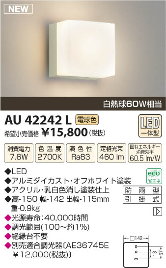 ¥³¥¤¥º¥ß¾ÈÌÀ KOIZUMI Ëɱ«·¿¥Ö¥é¥±¥Ã¥È LED AU42242L