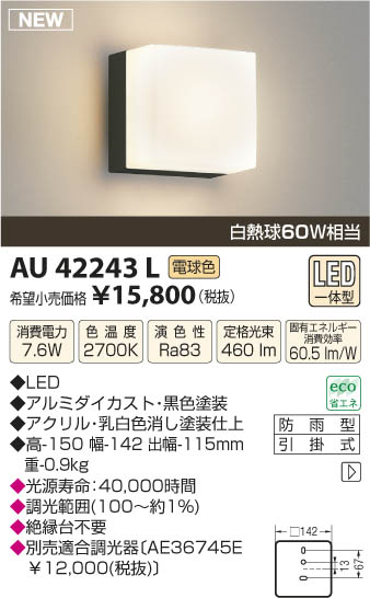 ¥³¥¤¥º¥ß¾ÈÌÀ KOIZUMI Ëɱ«·¿¥Ö¥é¥±¥Ã¥È LED AU42243L