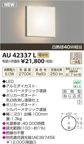 ¥³¥¤¥º¥ß¾ÈÌÀ KOIZUMI Ëɱ«·¿¥Ö¥é¥±¥Ã¥È LED AU42337L