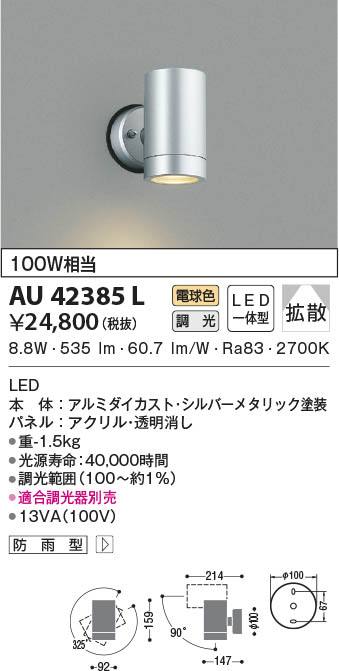 KOIZUMI ¥³¥¤¥º¥ß¾ÈÌÀ ¥¨¥¯¥¹¥Æ¥ê¥¢¥¹¥Ý¥Ã¥È¥é¥¤¥È AU42385L