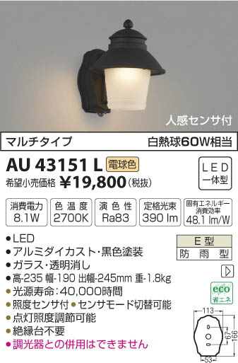 ¥³¥¤¥º¥ß¾ÈÌÀ KOIZUMI Ëɱ«·¿¥Ö¥é¥±¥Ã¥È LED¡ÊÅŵ忧¡Ë AU43151L