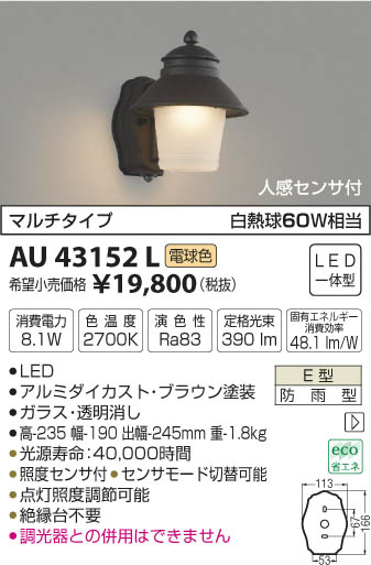 ¥³¥¤¥º¥ß¾ÈÌÀ KOIZUMI Ëɱ«·¿¥Ö¥é¥±¥Ã¥È LED¡ÊÅŵ忧¡Ë AU43152L