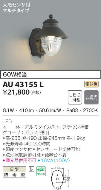 KOIZUMI ¥³¥¤¥º¥ß¾ÈÌÀ Ëɱ«·¿¥Ö¥é¥±¥Ã¥È AU43155L