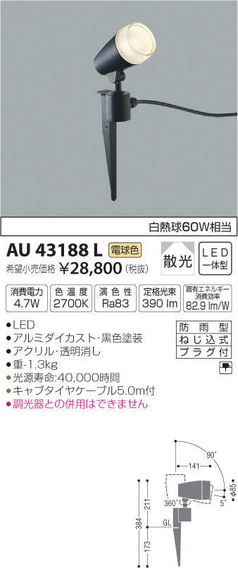 ¥³¥¤¥º¥ß¾ÈÌÀ KOIZUMI LED ¥¢¥¦¥È¥É¥¢¥¹¥Ñ¥¤¥¯¥¹¥Ý¥Ã¥È AU43188L