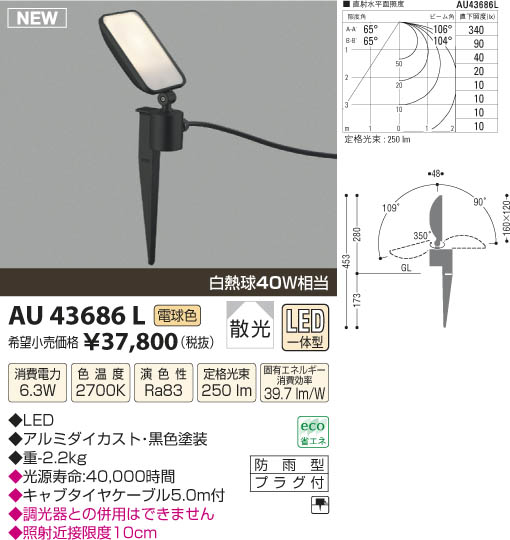 ¥³¥¤¥º¥ß¾ÈÌÀ KOIZUMI ¥¢¥¦¥È¥É¥¢¥¹¥Ñ¥¤¥¯¥¹¥Ý¥Ã¥È LED AU43686L
