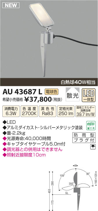 ¥³¥¤¥º¥ß¾ÈÌÀ KOIZUMI ¥¢¥¦¥È¥É¥¢¥¹¥Ñ¥¤¥¯¥¹¥Ý¥Ã¥È LED AU43687L