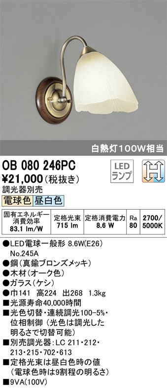 ODELIC ¥ª¡¼¥Ç¥ê¥Ã¥¯ ¥Ö¥é¥±¥Ã¥È OB080246PC
