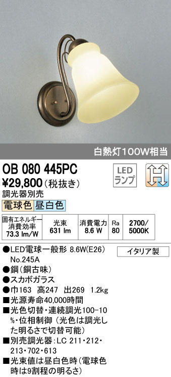 ODELIC ¥ª¡¼¥Ç¥ê¥Ã¥¯ LED ¥Ö¥é¥±¥Ã¥È OB080445PC