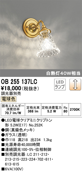 ODELIC ¥ª¡¼¥Ç¥ê¥Ã¥¯ ¥Ö¥é¥±¥Ã¥È OB255137LC