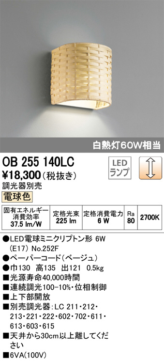 ODELIC ¥ª¡¼¥Ç¥ê¥Ã¥¯ ¥Ö¥é¥±¥Ã¥È OB255140LC