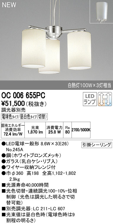 ODELIC ¥ª¡¼¥Ç¥ê¥Ã¥¯ ¥·¥ã¥ó¥Ç¥ê¥¢ OC006655PC