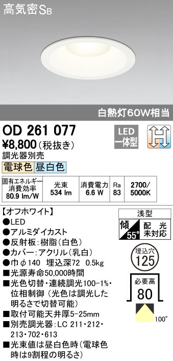 ODELIC ¥ª¡¼¥Ç¥ê¥Ã¥¯ LED ¥À¥¦¥ó¥é¥¤¥È OD261077