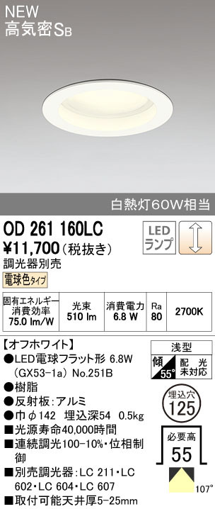 ODELIC ¥ª¡¼¥Ç¥ê¥Ã¥¯ ¥À¥¦¥ó¥é¥¤¥È OD261160LC