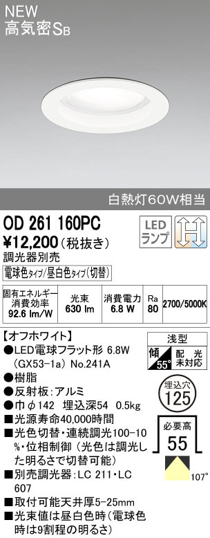 ODELIC ¥ª¡¼¥Ç¥ê¥Ã¥¯ ¥À¥¦¥ó¥é¥¤¥È OD261160PC