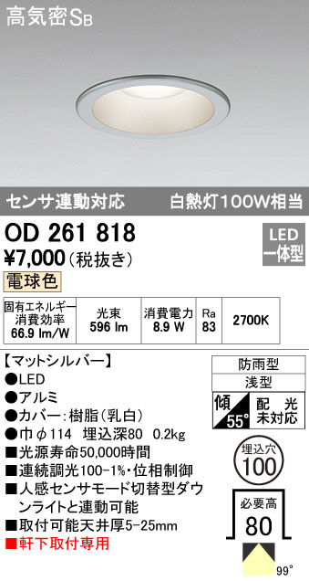 ODELIC ¥ª¡¼¥Ç¥ê¥Ã¥¯ LED ¥¨¥¯¥¹¥Æ¥ê¥¢¥é¥¤¥È OD261818