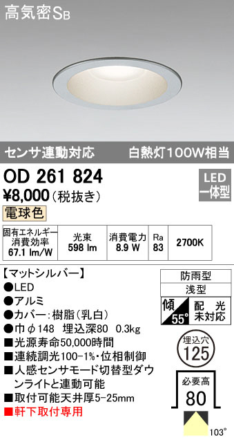 ODELIC ¥ª¡¼¥Ç¥ê¥Ã¥¯ LED ¥¨¥¯¥¹¥Æ¥ê¥¢¥é¥¤¥È OD261824