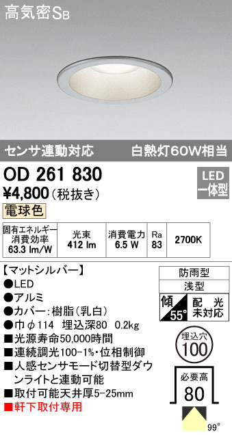 ODELIC ¥ª¡¼¥Ç¥ê¥Ã¥¯ LED ¥¨¥¯¥¹¥Æ¥ê¥¢¥é¥¤¥È OD261830