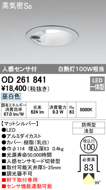 ODELIC ¥ª¡¼¥Ç¥ê¥Ã¥¯ LED ¥¨¥¯¥¹¥Æ¥ê¥¢¥é¥¤¥È OD261841