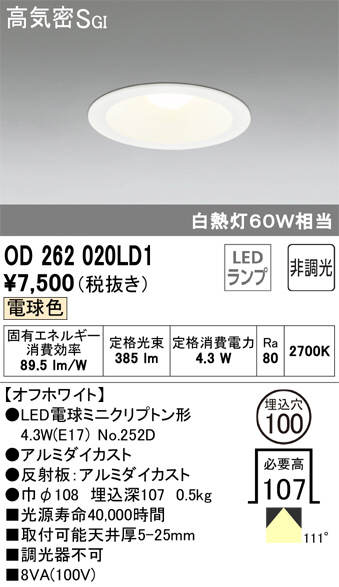 ODELIC ¥ª¡¼¥Ç¥ê¥Ã¥¯ ¥À¥¦¥ó¥é¥¤¥È OD262020LD1