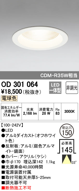 ODELIC ¥ª¡¼¥Ç¥ê¥Ã¥¯ ¥À¥¦¥ó¥é¥¤¥È OD301064