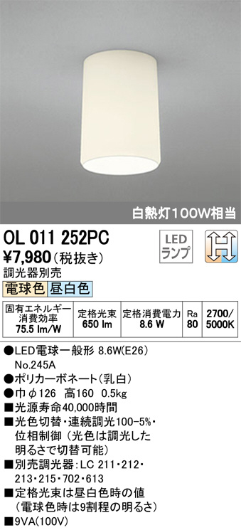 ODELIC ¥ª¡¼¥Ç¥ê¥Ã¥¯ ¾®·¿¥·¡¼¥ê¥ó¥°¥é¥¤¥È OL011252PC